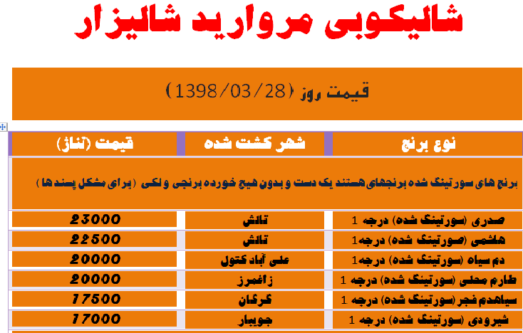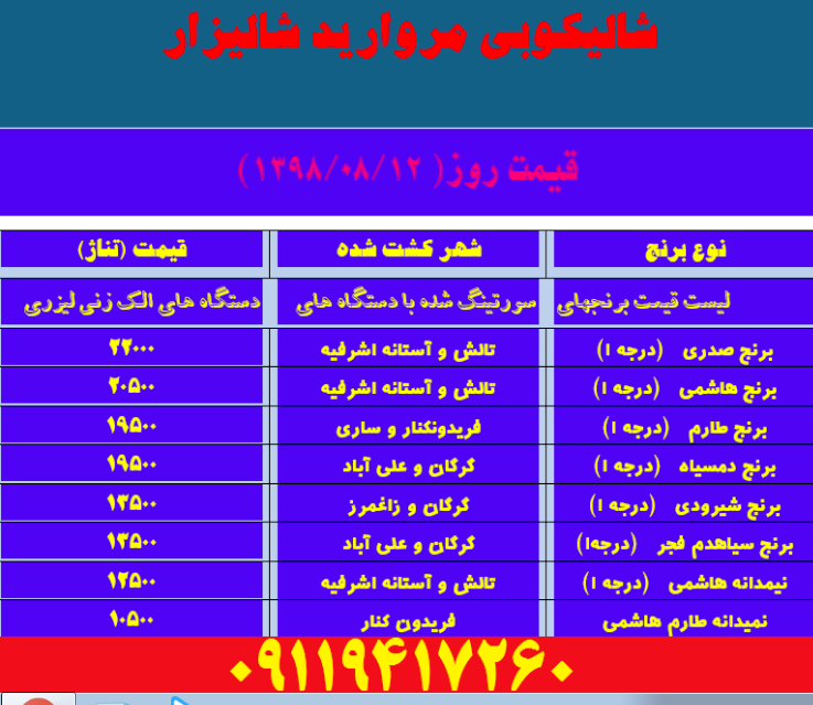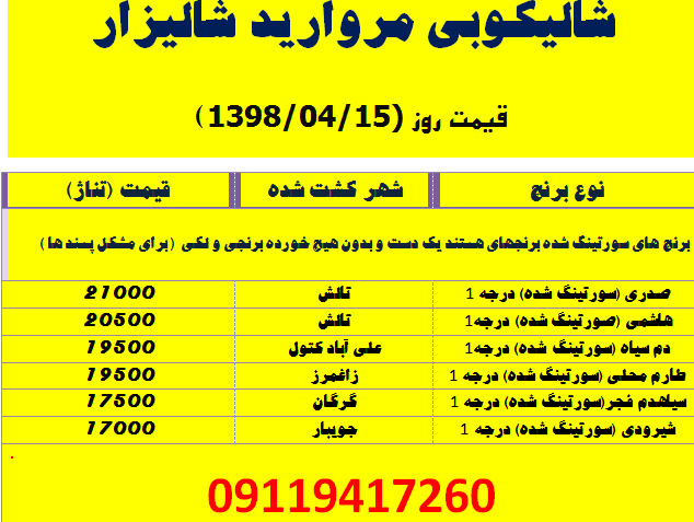 قیمت این برنج با کیفیت در کیلو از 23000 الی 26000 می باشد