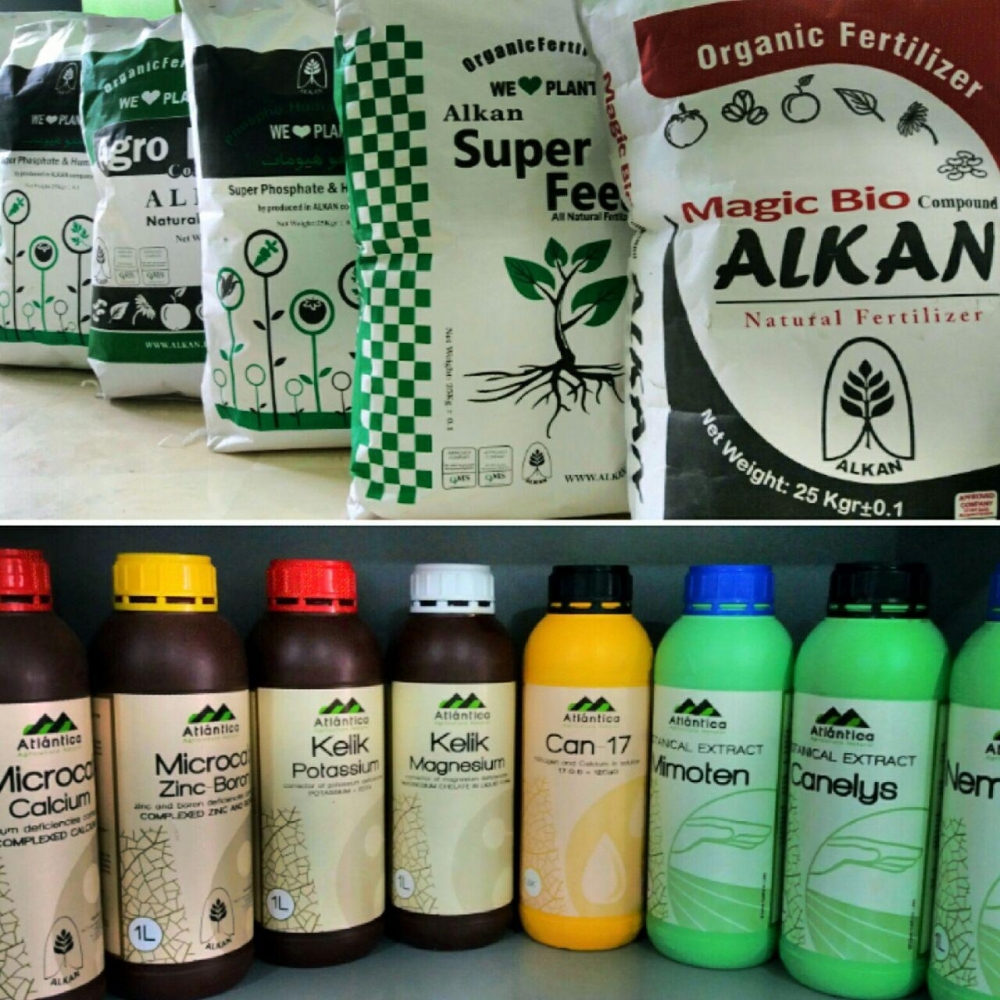 آلکان در حال حاضر برای تامین نیازهای کشور بعنوان نماینده انحصاری ، شروع به واردات محصولات شرکت بین المللی آتلانتیکا آگریکلا اسپانیا نموده است. محصولاتی چون کود آهن - کلکت ها - آمینوکت ها - رایکت ها - گوگرد مایع و بسیاری دیگر از نیازهای صنعت کشاورزی