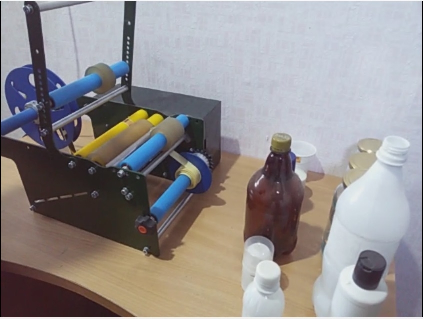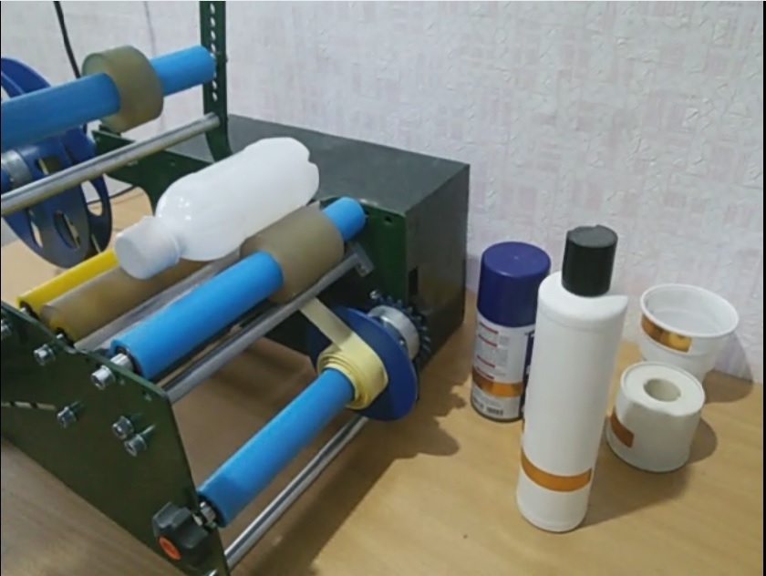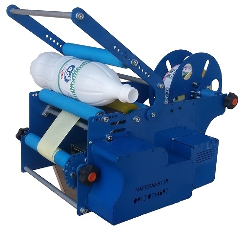 دستگاه لیبل چسبان نیمه اتومات این دستگاه ساخت گروه فنی و مهندسی نافع صنعت می باشد که کاربرد دستگاه برچسب زدن روی دور ظروف استوانه ای (گرد) که جنس پلاستیک (PET ، پلی اتیلن و ..) شیشه ای و فلزی قوطی در مصارف غذایی ، شیمیایی ، بهداشتی و دارویی است. به صورت نیمه اتومات رو میزی میباشد که با قرار دادن بطری در محل تعبیه شده لیبل را به طور اتومات روی ان می چسباند.