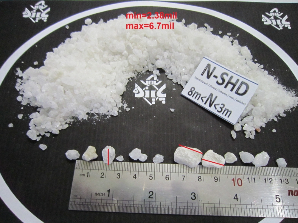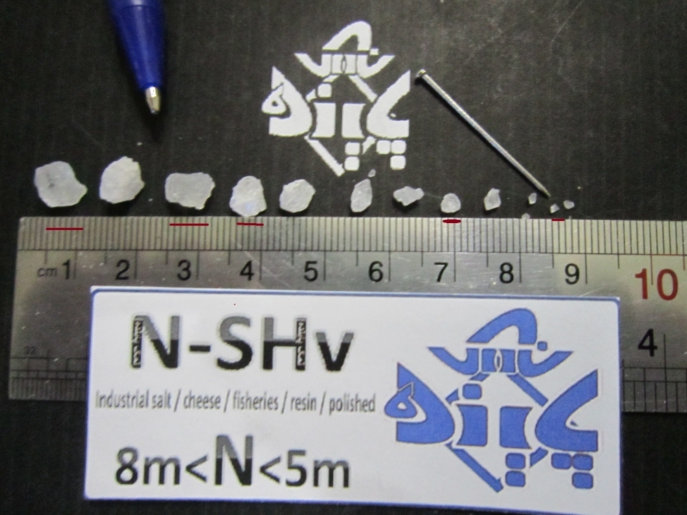 نمک دانه بندی صنعتی شیلاتی نمک گرانول نمک شیلاتی در تمام کارخانه های نمک با نام نمک شیلاتی یا نمک پنیری شناخته میشود دامنه دانه بندی این نمک بین 1.5میلیمتر تا نزدیک 4.5میلیمتر میباشد درگروه نمک پاینده این محصول با کد N-SHd شناخته میشود
