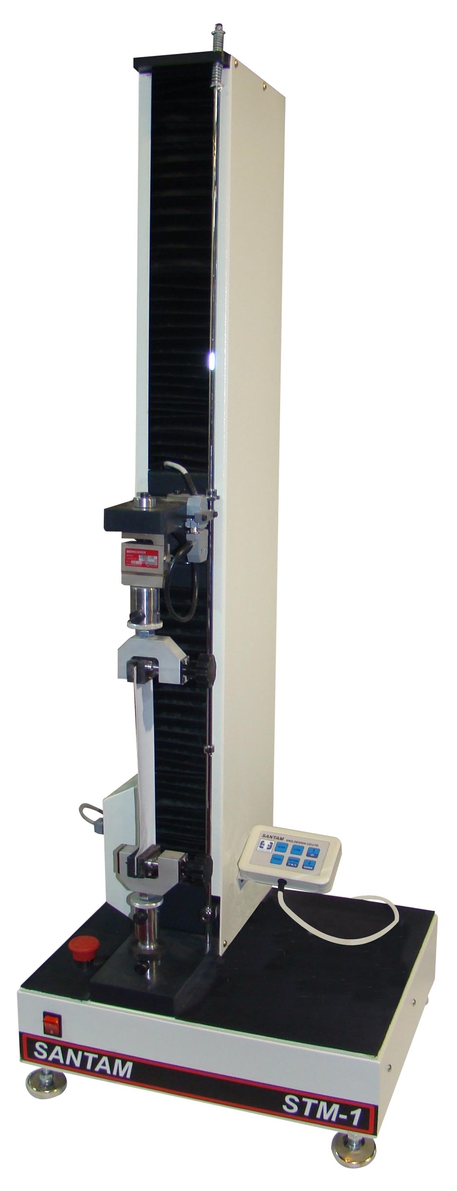 دستگاه تست کشش 100 کیلو -(STM-1) جهت تست های کشش، فشار، خمش و.... مواد در نیروی کم بوده که در آزمایشگاههای کنترل کیفی صنعت و مراکز تحقیقاتی به کار میرود. همچنین دستگاه قادر است خواص مکانیکی طیف وسیعی از مواد را تست نماید که بطور کلی بشرح زیر می باشند: - کنترل کیفی فیلم های چند لایه پلیمری - کنترل کیفی محصولات خوراکی و کشاورزی -کنترل کیفی مواد اولیه بکار رفته در بسته بندی - محصولات پلیمری در حوزه ی پزشکی و تزریقات - تست رشته های ظریف از جنس پلیمر و کتان - تست ضریب اصطکاک