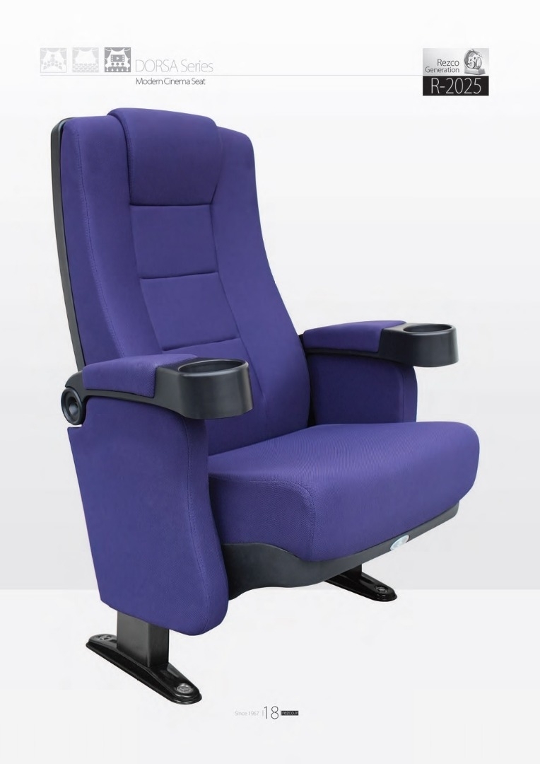 این مدل صندلی هم به صورت صندلی سینمایی وهم به صورت صندلی آمفی تئاتر استفاده میشود و از فوم سرد تهیه شده است .این صندلی آمفی تئاتری به صورت دو پایه بوده و محل نگهداری بطری آب را بر روی دسته صندلی دارد . دراین صندلی آمفی تئاتری دسته قابلیت بلند شدن دارد و کفی صندلی بر میگردد . گروه صنعتی رض کو