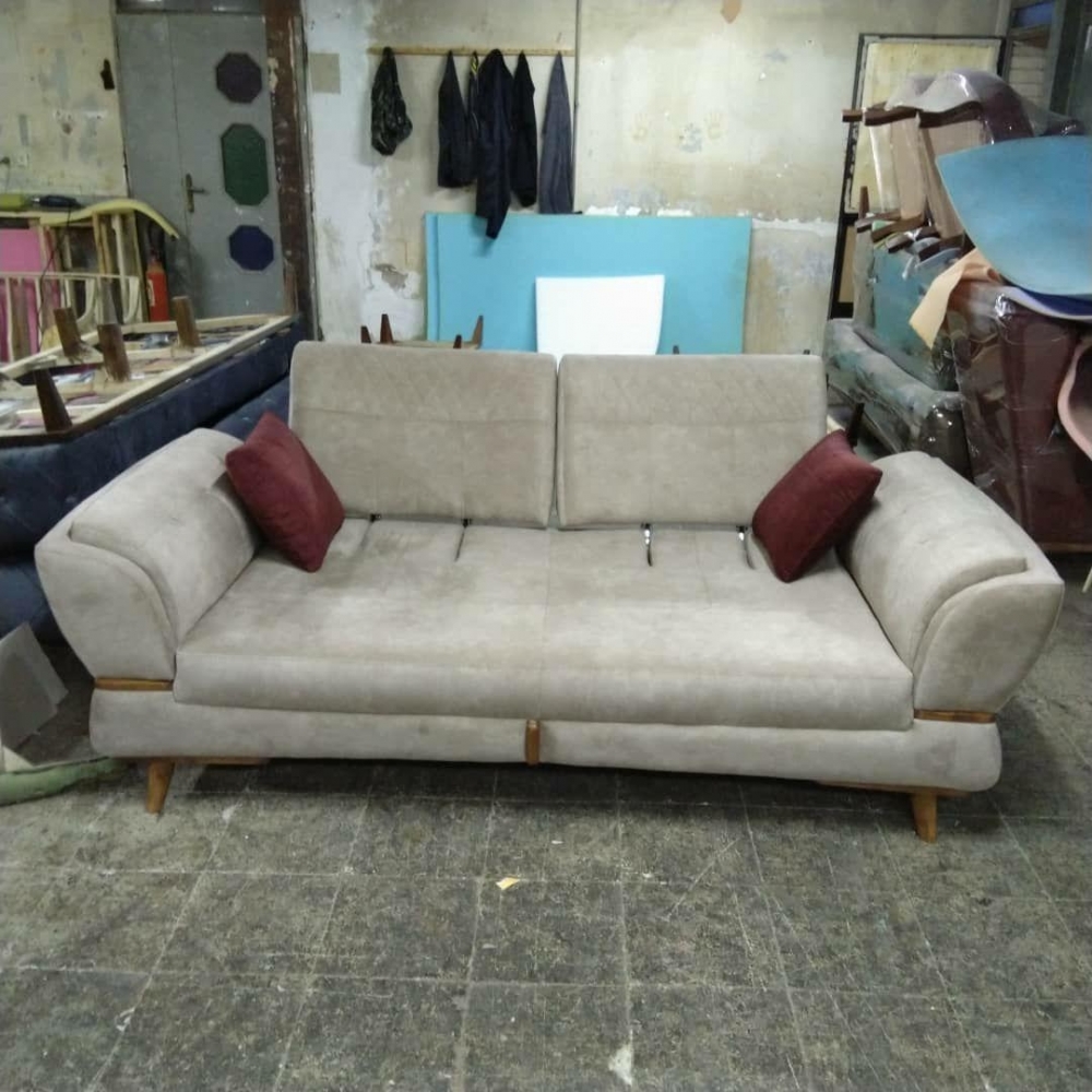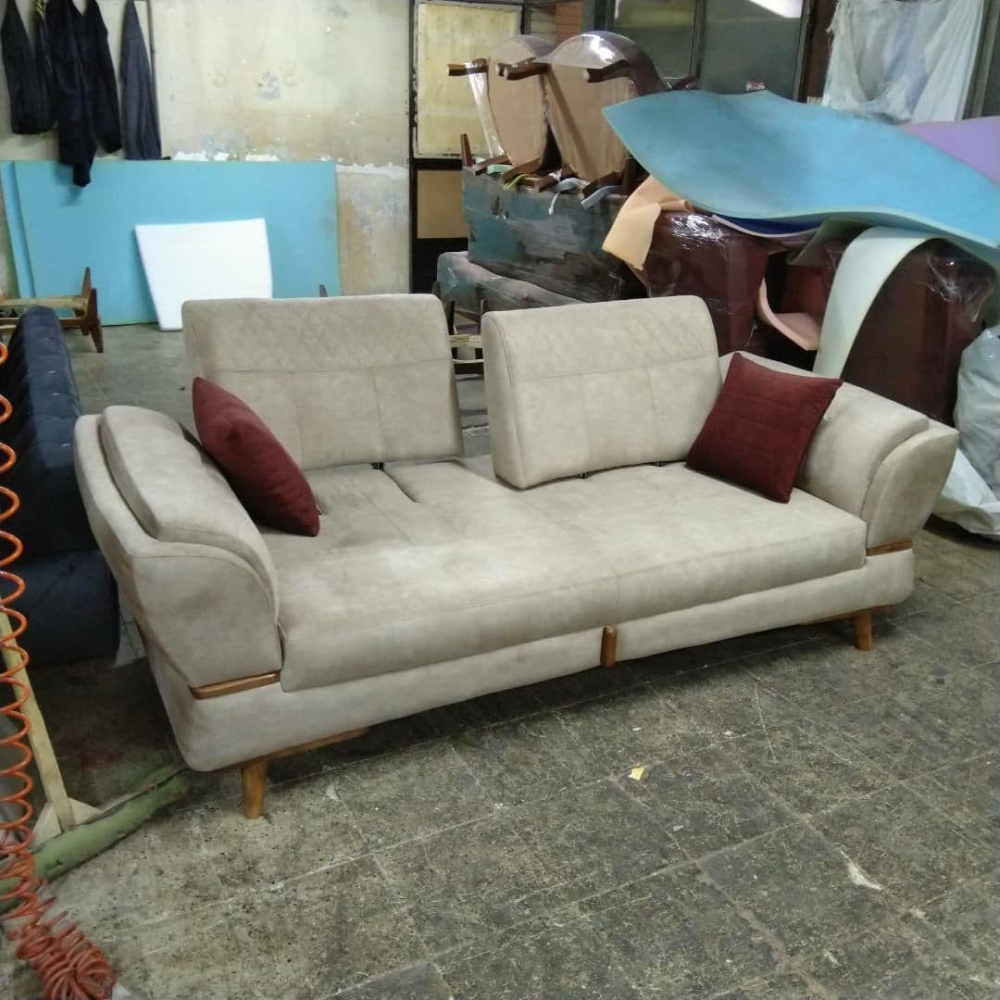 تکیه گاه کاناپه ها دارای یراق بوده که میتوان با یک حرکت آن به عقب برد و عمق مبل را زیاد کرد.