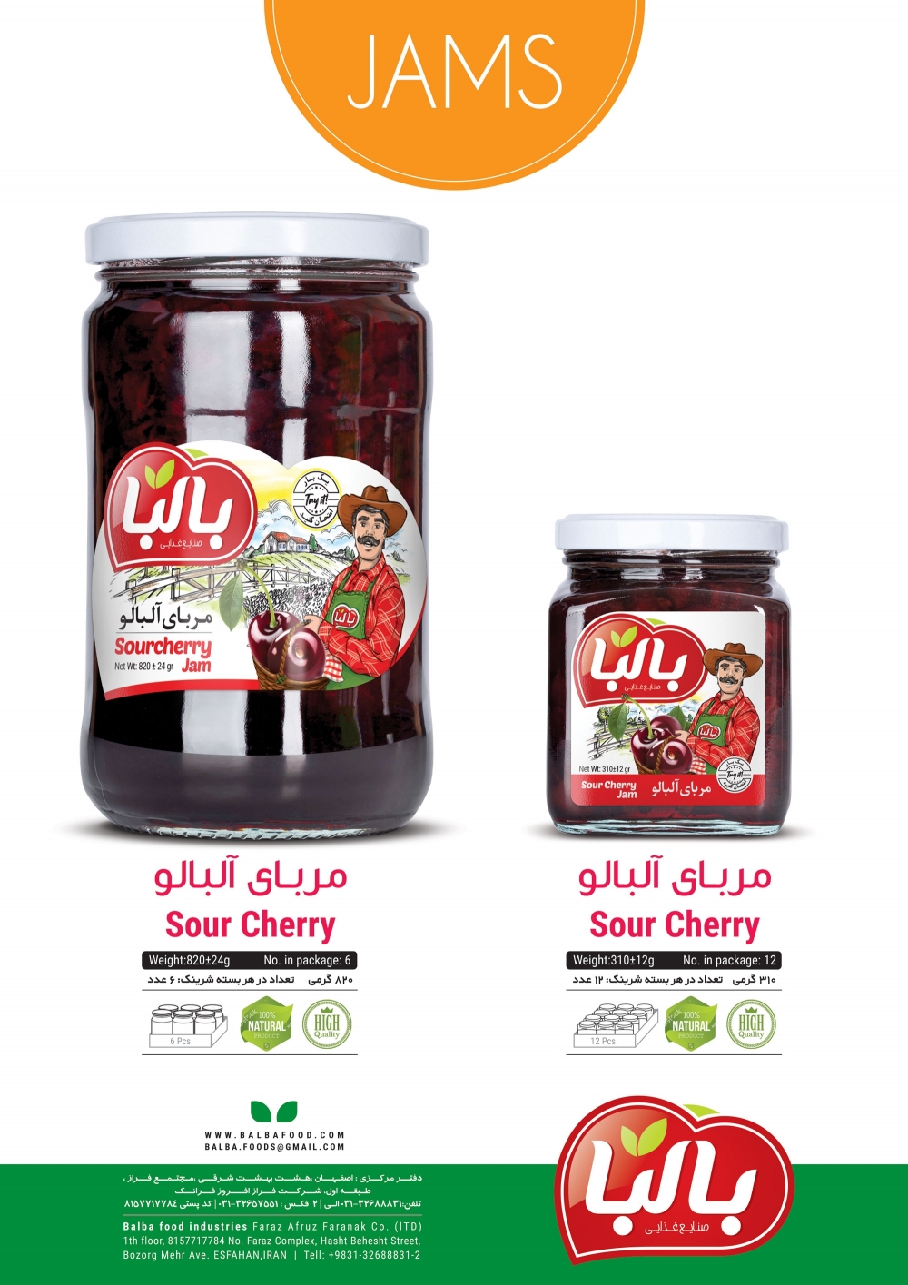 مربا آلبالو شیشه 820 گرمی تعداد در بسته 6 عددی مربا آلبالو شیشه 310 گرمی تعداد در بسته 12 عددی