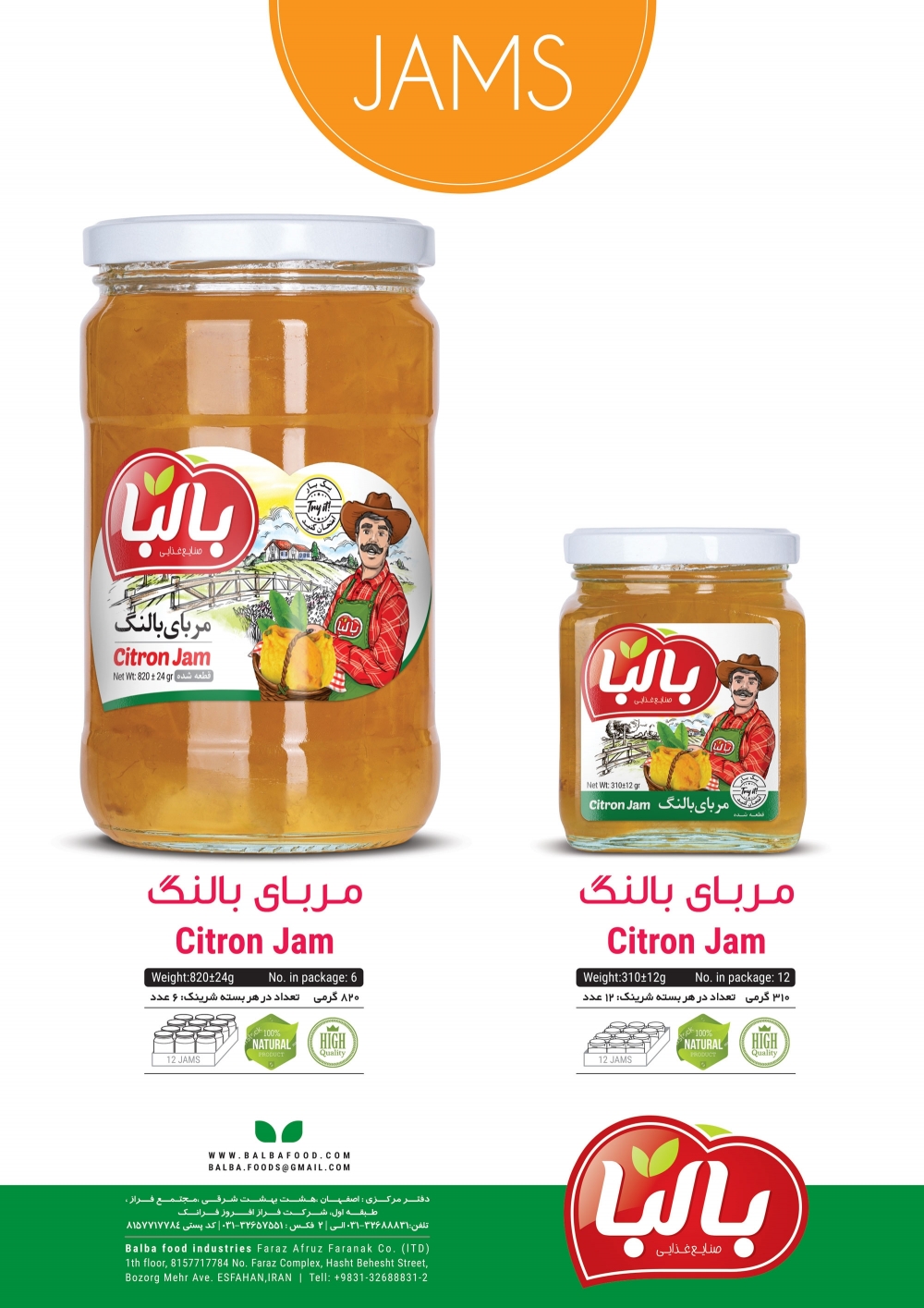 مربا بالنگ شیشه 820 گرمی تعداد در بسته 6 عددی مربا بالنگ شیشه 310 گرمی تعداد در بسته 12 عددی