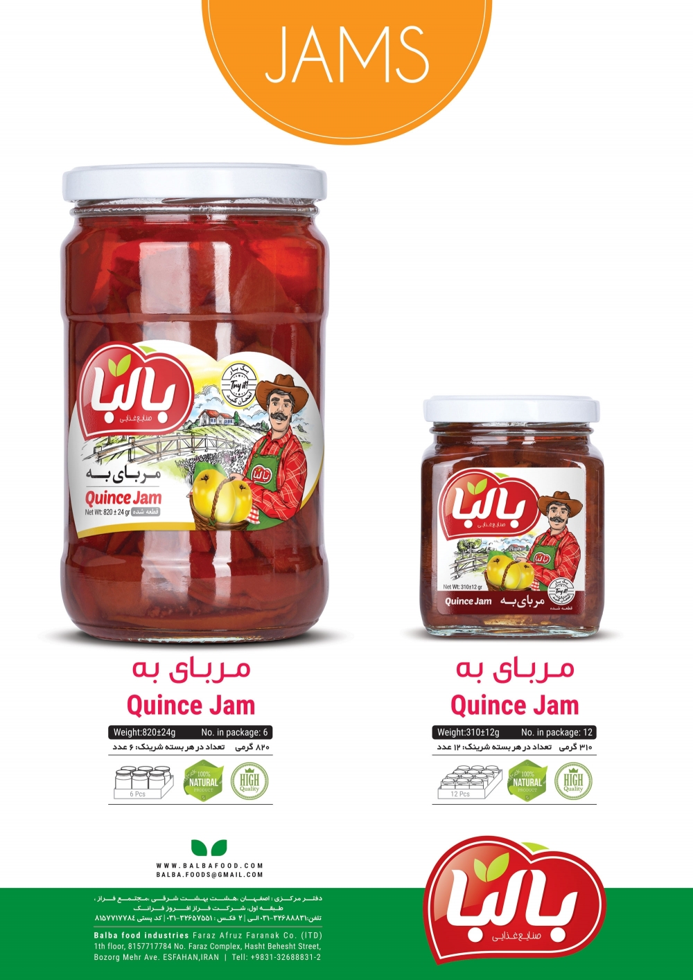 مربا به شیشه 820 گرمی تعداد در بسته 6 عددی مربا به شیشه 310 گرمی تعداد در بسته 12 عددی