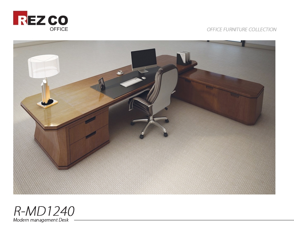 میزهای مدیریت مدرن ولوکس باید تمام نیازهای یک مدیر را برآورده سازد زیرا مدیران زمان بیشتری را پشت میز سپری میکنند و نامناسب بودن و غیر استاندارد بودن آن می تواند آسیب های جدی به ارگونومی بدنشان وارد کن ابعاد میز مدیریت ویژه 76*120*350 سانتیمتر است که ارتفاع استاندارد این میز مدیریتی سبب کاهش خستگی از قسمت مهره کمر میگردد . ابعاد این میز مدیریت کلاسیک با توجه به درخواست مشتری قابل تغییر می باشد .بر روی صفحه این میز مدیریت الحاقی حفره کوچکی جهت دسته بندی منظم کابلهای خروجی و ورودی سیستم کامپیوتر تعبیه شده که با یک درپوش پلاستیکی کاور میگردد .