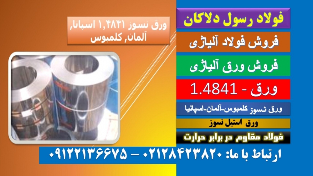 استیل 4841-ورق استیل نسوز با نامهای فولاد استیل 1.4841 و استیل310 و استیل نسوز کلمبوس و استیل نسوز اسپانیا و استیل نسوز آلمانی در بازار شناخته میشود و بصورت ورق - تسمه و میلگرد موجود میباشد. فروشگاه فولاد رسول دلاکان _-_ با ربع قرن تجربه در زمینه عرضه انواع فولاد آلیاژی آلیاژی – انواع ورق آلیاژی با استانداردهای روز دنیا و با کیفیک و قیمت مناسب در سراسر ایران در خدمت صنعتگران عزیز کشور فعالیت می نماید. از اینکه ما را برای خرید انتخاب می نمایید سپاسگزاریم. ارتباط با ما: ۰۹۱۲۲۱۳۶۶۷۵- ۰۲۱۲۸۴۲۳۸۲۰ fooladrasuldalakan@gmail.com ورق نسوز - ورق نسوز کلمبوس - 1.4841 - ورق اسپانیا-ورق نسوز – از ورق نسوز در صنعت پتروشیمی و نیروگاه ها،پالایشگاه ها و جایگاه های سوخت و مخازن نفتی استفاده می شود. تحمل حرارت ورق نسوز از ۳۰۰ درجه تا ۱۴۰۰ درجه متغیر است. 1.4841 یا 310 ، یکی از پرکاربرد ترین متریالی که در تولید کوره ها و جهت دیگر مصارف نسوز بکار میرود ورق استیل نسوز یا ورق استیل 1.4841 ( استیل 310 )میباشد. قیمت ورق نسوز یا قیمت ورق استیل 310 و 310S نسبت به سایر ورق های گروه 300 بالاتر میباشد که دلیل آن وجود 24 تا 26 درصد کروم و 19 تا 22 درصد نیکل میباشد. انواع ورق استیل نسوز 1.4841 : - ورق استیل 321 که تا حدود 960 درجه سانتیگراد استحکام دارد. -ورق استیل 309 تحمل دما تا حدود 1100 درجه سانتیگراد . - ورق استیل 1.4841 تحمل دما تا حدودا 1250 درجه سانتیگراد و بالاترین دمای کاری در بین آلیاژ های استنلس استیل میباشد . مناسب برای ساخت جعبه های سمانتاسیون و سخت کاری تا 1200 درجه سانتیگراد, قطعات و تجهیزات کوره سوپاپ توربین گازی, اجزاء موتور جت, المنت های برقی, تجهیزات اتاق پخت, محفظه های بازپخت, سبد های لعاب کاری, جعبه های عملیات حرارتی نظیر آنیل و کربورایزینگ, جعبه نایترایدینگ, پمپ, اجزاء بویلر, آستر کوره و همچنین قابل استفاده در صنایع سرامیک, شیشه, چینی و سیمان Heat Resistance Steel NH22 – H525 – 4841S – IASC4841 – 20Ch25N – 314S25 – 310 – AKC1 – SUH310