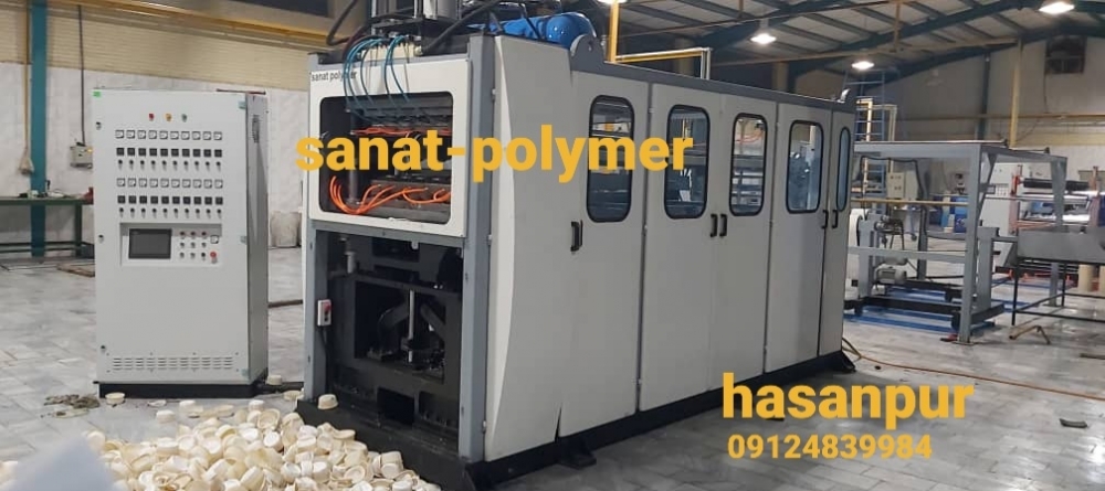 1- دستگاه تولید ظروف یکبار مصرف ترموفرمینگpp ظرفیت تولید ۲۰۰ کیلو گرم در ساعت به همراه دستگاه آسیا قالب لیوان ۲۱ کبیته