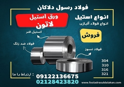 فروش ورق لاتون استیل لاتون استیل کاربرد گسترده ای در صنعت دارد. که از آن در آب بندی مخازن و لوله کشی با لوله های استیل، تنظیم و آب بندی فلنج ها. استفاده در کمپرسور جایگاه CNG استفاده می شود. ورق لاتون استیل در گریدهای مختلفی تولید و در بازار عرضه می شود که برخی از این گریدها شامل موارد زیر است. گرید 301 گرید 304 استیل 310 گرید 316 گرید 321 استیل 420 گرید 316L