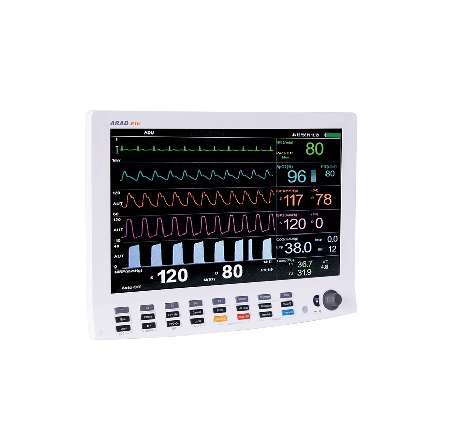 مانیتور علائم حیاتی Cardioset ARAD P10 با نمایش علائم مختلف حیاتی، روتاری کاربردی ، کلیدهای میانبر و صفحه نمایش رنگی 19 اینچ، عملکرد و دقتی را که شما از یک مانیتور علائم حیاتی انتظار دارید فراهم کرده و باعث ارائه بهترین فرایند مراقبت از بیمار میشود. این دستگاه قابل استفاده در اتاق عمل،NICU, CCU,ICU, اورژانس و همچنین مناسب رده های سنی مختلف بزرگسالان، خردسالان و نوزادان می باشد.