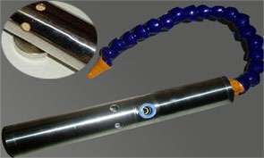 تفنگ هواي سرد تفنگ هواي سرد، وسيله اي است که براي حل نمودن يک مشکل قديمي استفاده مي شود. گرماي زياد ايجاد شده در عمليات ماشين کاري خشک، باعث کاهش طول عمر ابزار و سرعت ماشين کاري مي گردد. اين وسيله قادر است دماي هواي فشرده ورودي را تا حدود 30 درجه سلسيوس کاهش داده و ابزار را خنک کند. همچنين با خنک نمودن ابزار در شرايطي که نمي توان از روانکار يا خنک کننده مايع استفاده کرد، بهره وري توليد را افزايش مي دهد و از لحاظ زيست محيطي نيز محيطي تميز و عاري از هر گونه آلاينده را براي اپراتور دستگاه فراهم مي کند. از اين وسيله بويژه مي توان در کاربردهاي زير استفاده نمود: 1- تيز نمودن ابزار 2- فرايند فرزکاري 3- دريل کاري 4- خنک کاري اره در اره نواري 5-ماشين کاري پلاستيک 6-سنگ زني تاير 7-سنگ زني سطوح 8- سنگ زني ابزار 9- برش ليزر دبي هواي مصرفي: 10-40 فوت مکعب بر دقيقه ظرفيت خنک کاري: 500-3000 بي تي يو بر ساعت دماي هواي فشرده: 21 درجه سلسيوس فشار هوا: 6.9 بار اين وسيله از لوله گردابي جهت تبديل نمودن هواي فشرده ورودي به دو هواي کم فشار استفاده مي کند. صداي هواي خروجي از سمت داغ و سرد اين وسيله توسط مافلرها کاهش داده مي شود.