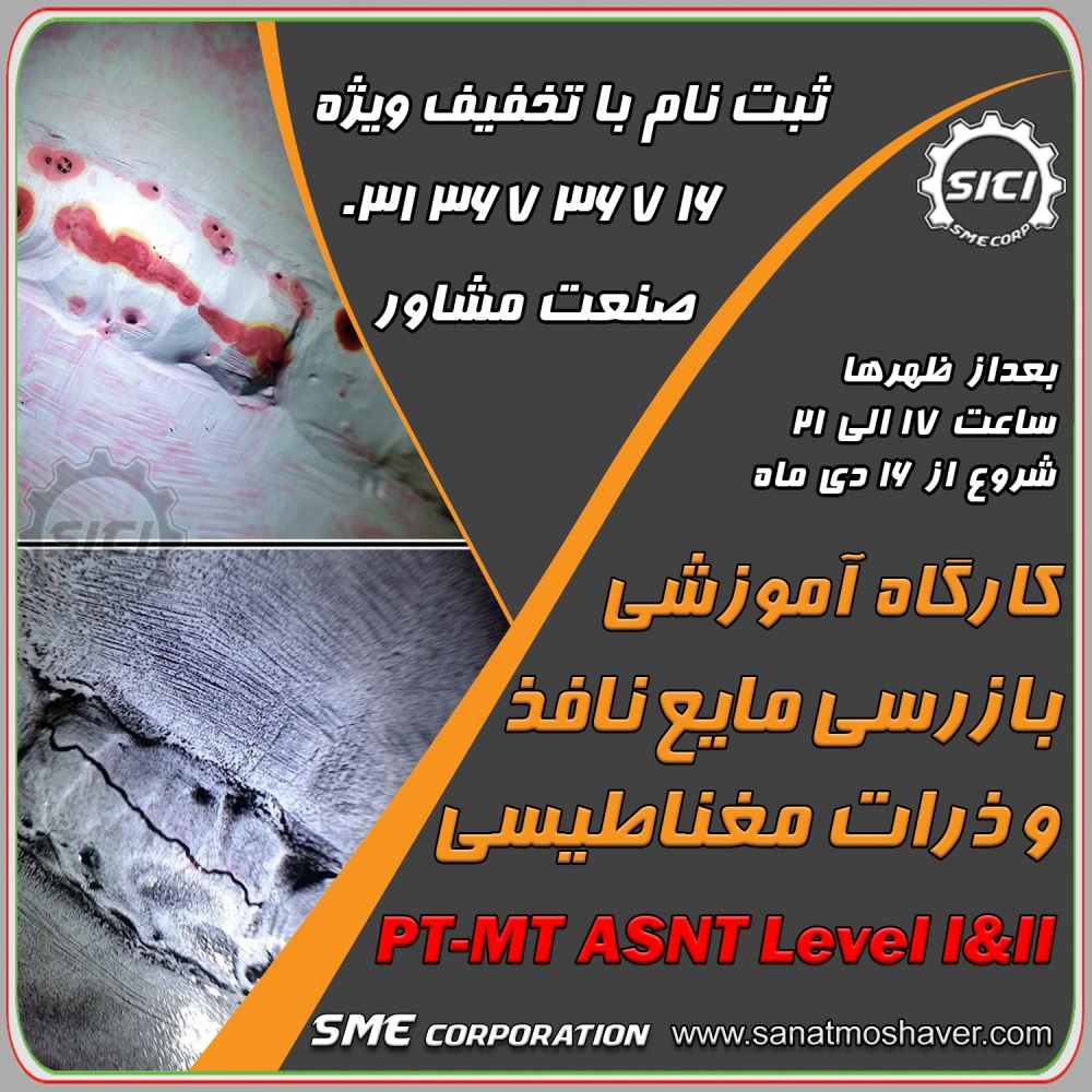 دوره تخصصی بازرسی با مایعات نافذ PT و بازرسی با ذرات مغناطیسی MT