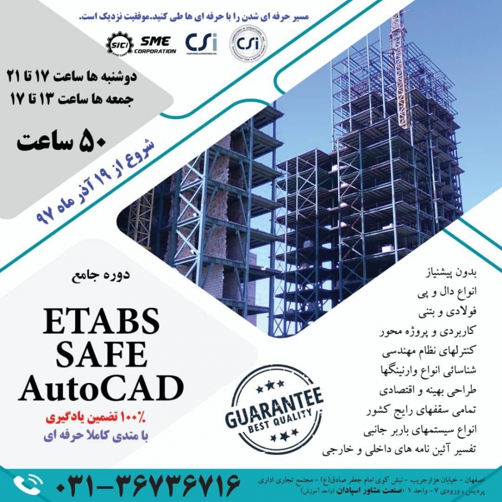 صفر تا صد محاسبات ساختمان های فولادی و بتنی با نرم افزارهای Etabs, Safe و AutoCad